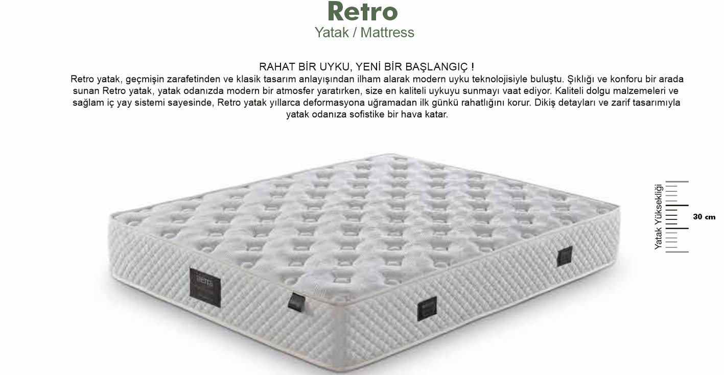 Retro Yatak, ergonomik tasarımı ve modern çizgileriyle mükemmel uyku konforu sağlar. Vücudunuzu doğru bir şekilde destekleyerek gece boyunca rahatlık sunar. Yüksek kaliteli malzemelerle üretilen yatak, dayanıklı yapısı ile uzun süreli kullanım sağlar. Nefes alabilen kumaşı, serin bir uyku ortamı yaratır ve terlemeyi engeller. Retro Yatak, estetik ve fonksiyonelliği bir arada sunarak sağlıklı ve dinlendirici bir uyku deneyimi sağlar.