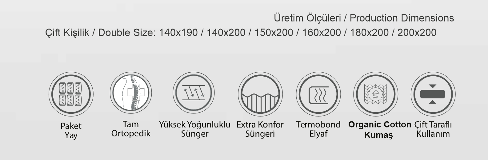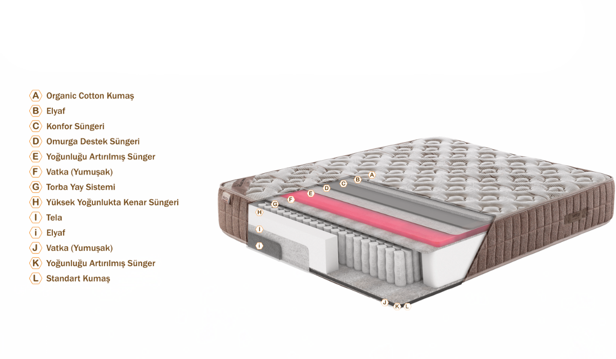 Bu organik pamuk yatağın yumuşak, nefes alabilen ve çevre dostu yapısı ile doğal bir uyku deneyimi sunar. Terlemeyi azaltır, alerji riskini en aza indirir ve omurga sağlığınızı korur. Kimyasal içermeyen üretim süreci ile doğaya ve sağlığınıza duyarlı bir seçenektir. Ayrıca sade ve şık tasarımıyla yatak odanıza doğallık katar.